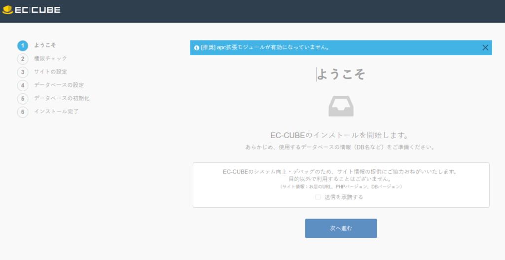 ECCUBEの「apc拡張モジュールが有効になっていません」の解決方法
