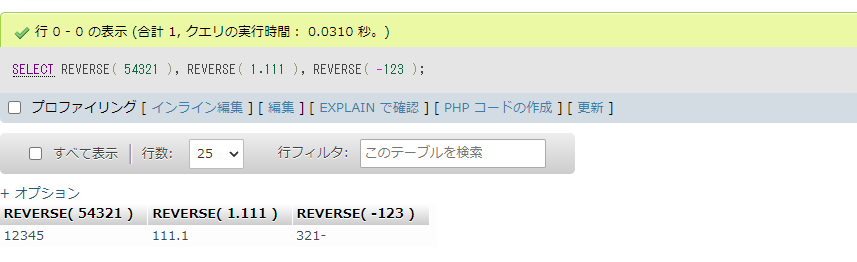 REVERSE( -123 )実行結果